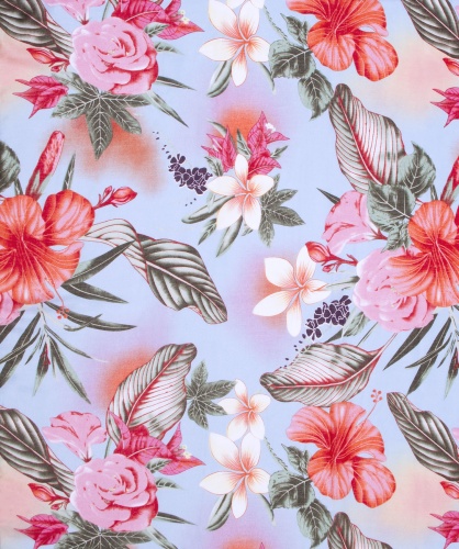 Легкий шарф из приятной на ощупь ткани. Принт с тропическими цветами - один из трендов нового сезона. Сочетание нежного голубого и активного розово-оранжевого. Шарф декорирован кисточками. Данная модель отлично подойдет к весенне-осеннему гардеробу.