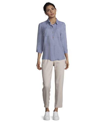 Блуза прямого покроя. Отложной воротничок, застежка на пуговицах, карманы на груди, рукава 3/4. Вискозный материал приятен к телу и обеспечивает максимальный комфорт. В сочетании с любыми брюками и обувью блуза обеспечивает стильный современный образ!