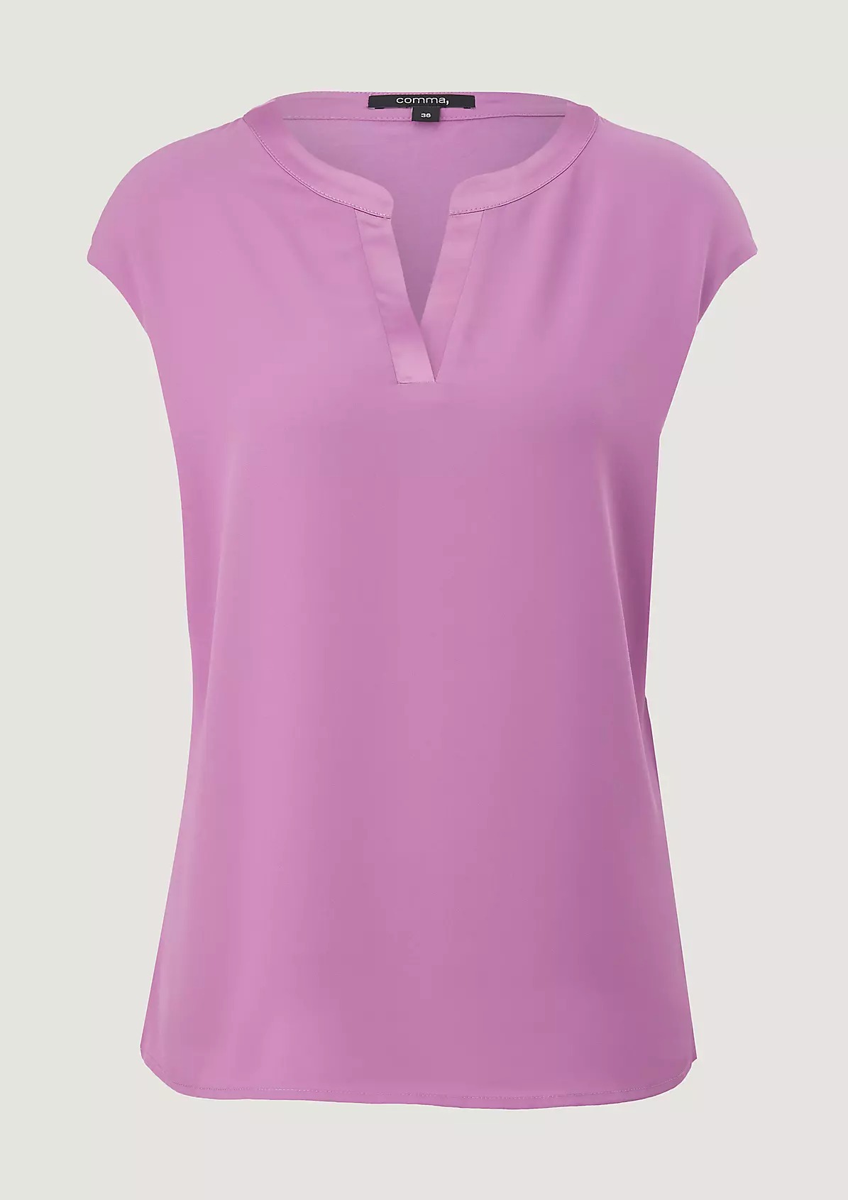 На сайте указаны российские размеры. Тонкая однотонная футболка из вискозы. Длина спины: 64 см в размере 42.