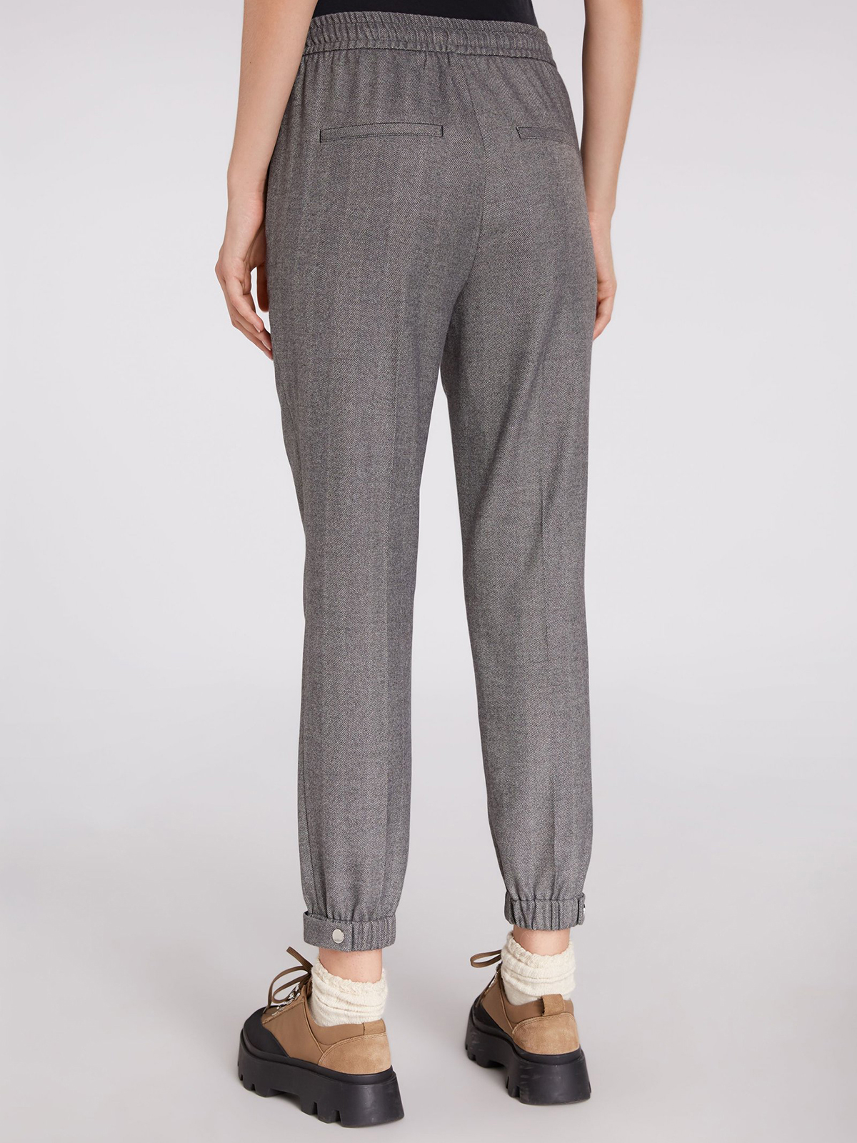 Брюки прямого кроя со стрелками. Притачной эластичный пояс с кулиской, также эластичные резинки по низу брючин. Брюки комфортны в ношении и подойдут для образа в повседневном городском стиле.