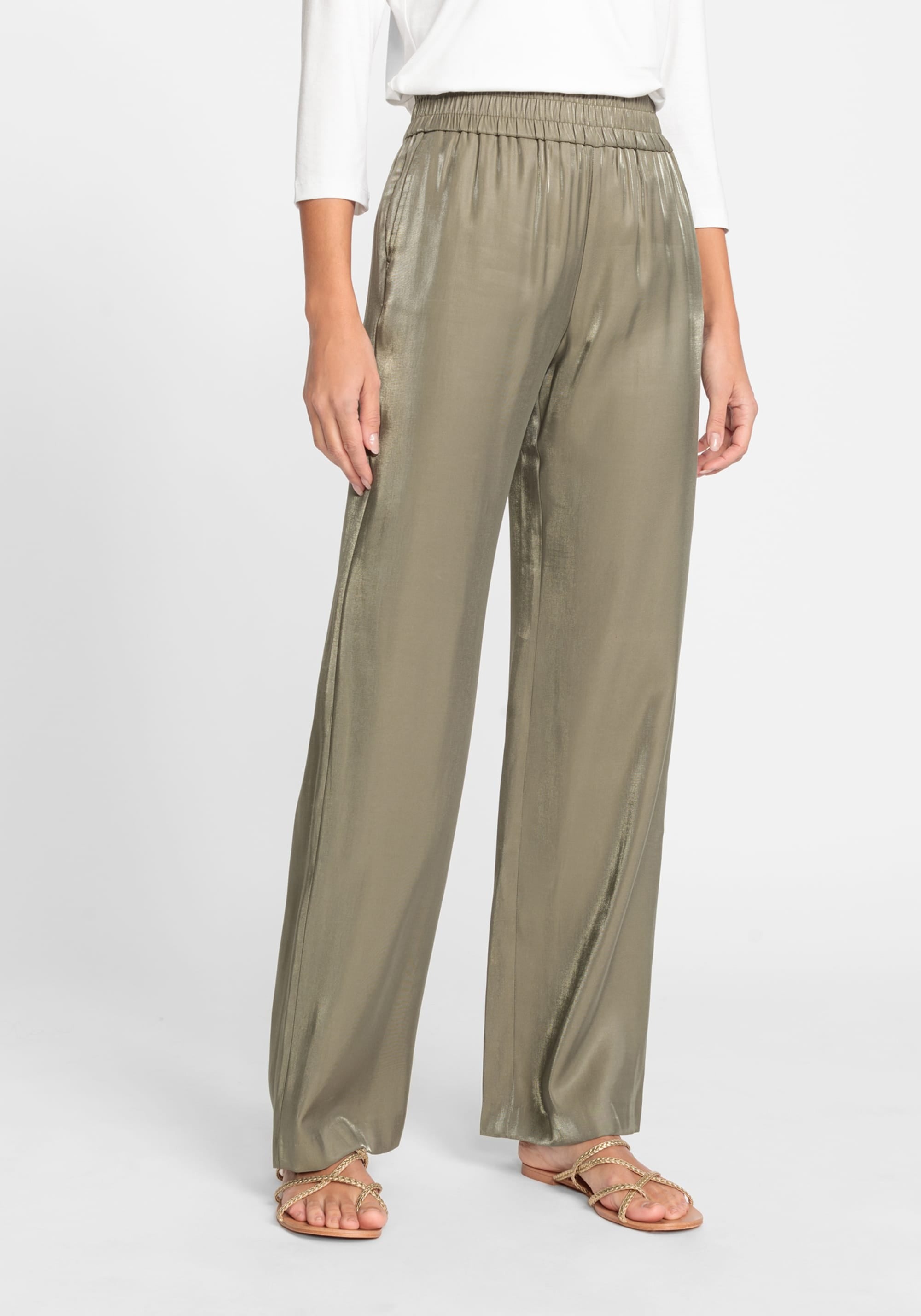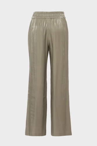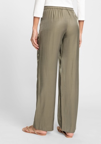 Брюки из вискозной ткани создают ощущение воздушности на коже. Удобство благодаря широкому эластичному поясу и двум прорезным карманам.