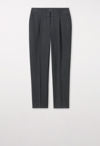 Брюки в стиле Lounge из тонкотканого двухцветного габардина. Складки на талии и складки на штанинах завершают дизайн.