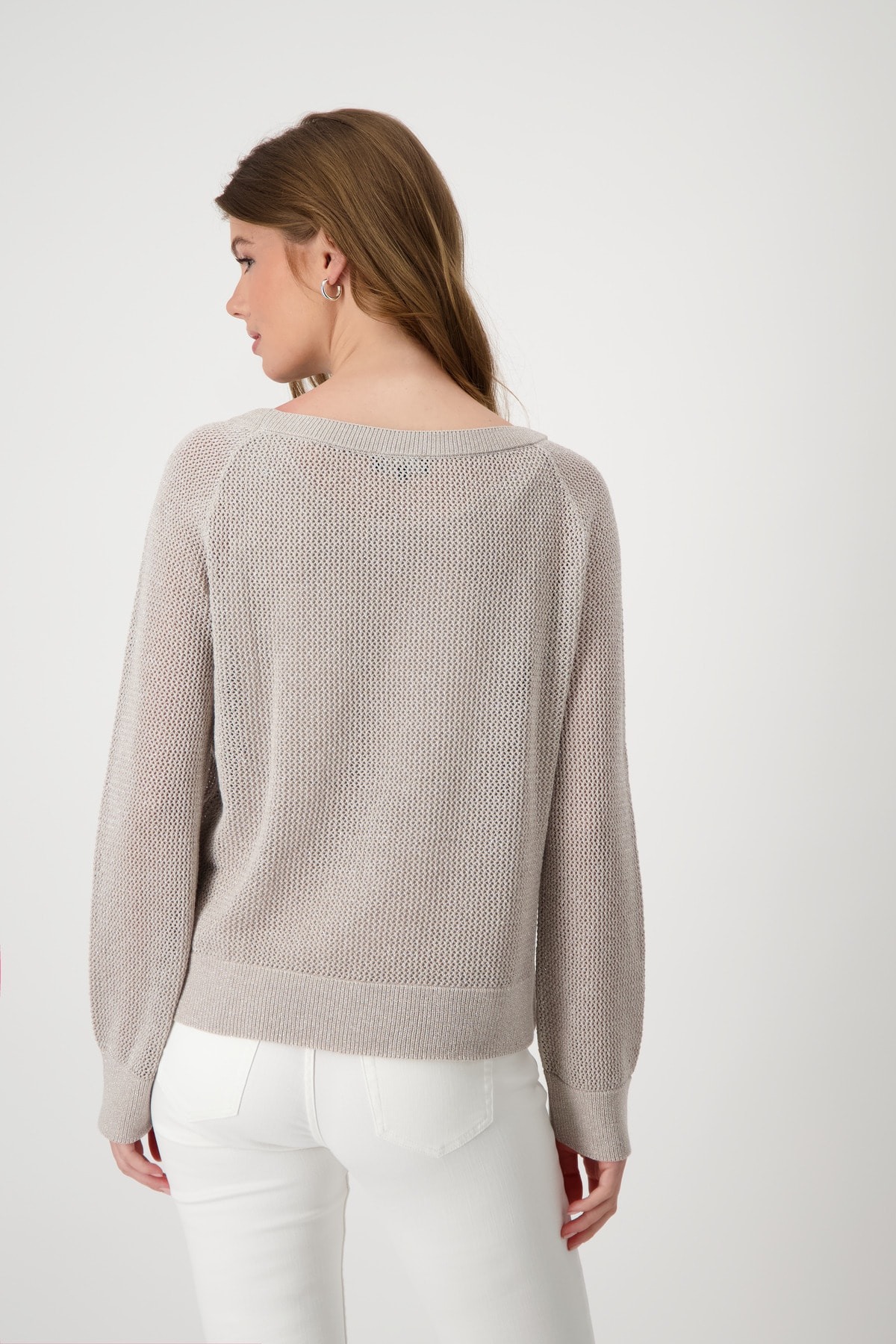 Этот свитер из высококачественной смеси хлопка впечатляет блестящим эффектом люрекса и модным вырезом под горло. Ажурный узор. Регулярная посадка. Ребристый круглый вырез. Длинные рукава реглан. Ребристые манжеты и подол. Длина 44 размера 56 см.