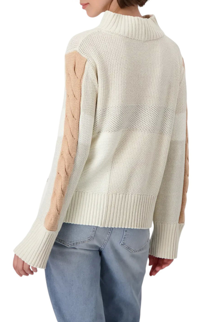 Модный свитер MONARI с колор-блоками впечатляет структурой рисовых волокон и частично выполнен из блестящей люрексовой пряжи.