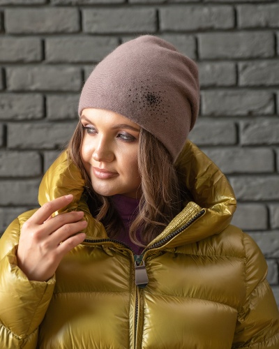 Отличный выбор для городских образов в холодное время года! Эта модель шапки подходит для любого овала лица и сочетается как с классическим пальто, так и с курткой в стиле кэжуал. Элегантность модели придает декор стразами. Мягкий смесовый материал с вискозой и ангорской шерстью обеспечивает сохранение тепла.