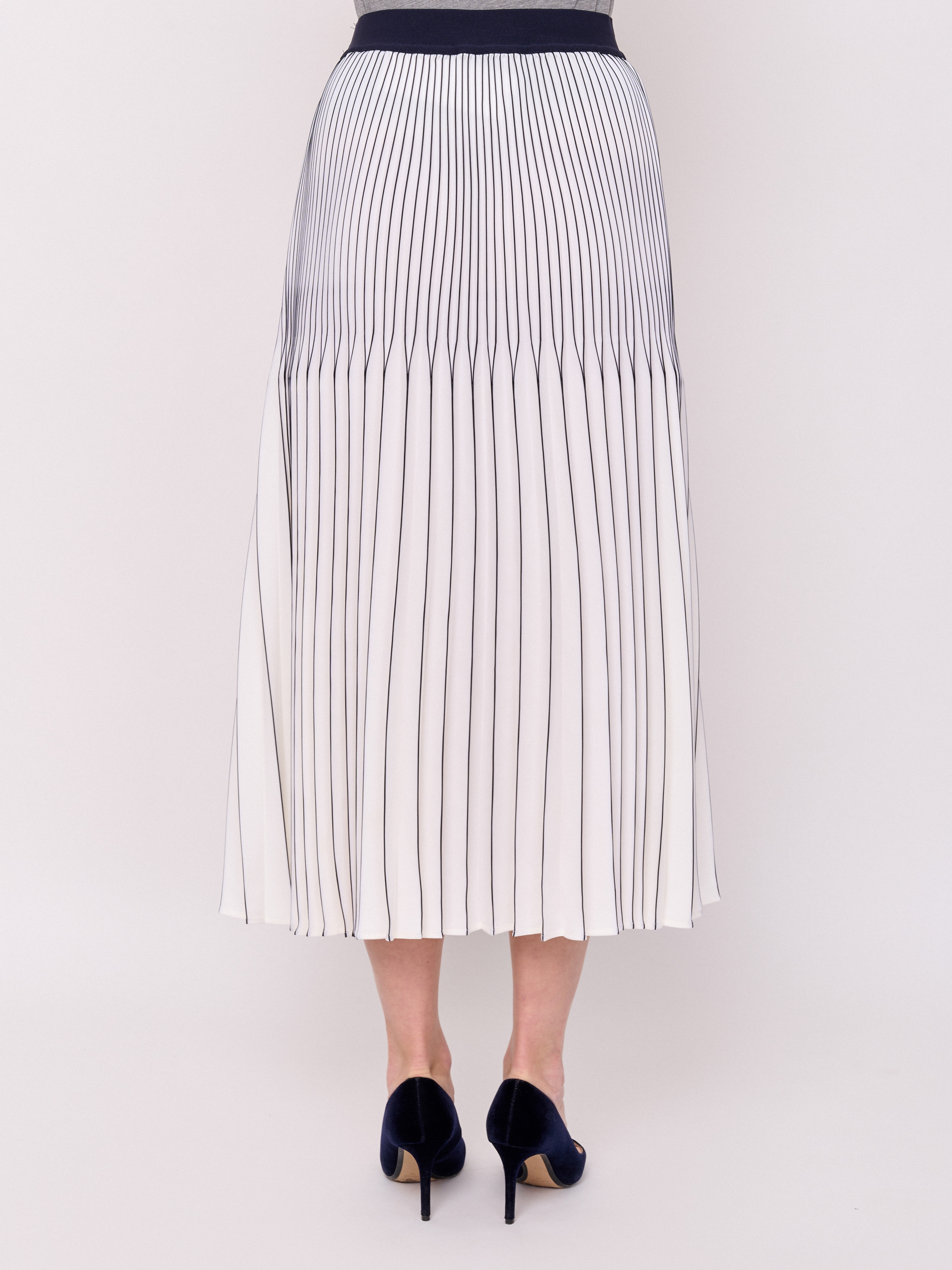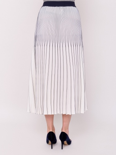Детали: без застежки, покрой расклешенный, посадка средняя, рисунок полоска, без карманов, конструктивные элементы гофре, модель юбки гофрированная, длина юбки миди. Длина по спинке: 83 см.